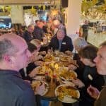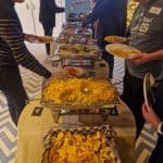Daarna was het tijd om aan te schuiven bij het buffet. Geen klassiek stamppotbuffet dit keer, maar een smaakvolle “blauwe hap”. Even wennen voor sommigen, maar al snel bleek het een schot in de roos: de reacties waren enthousiast.