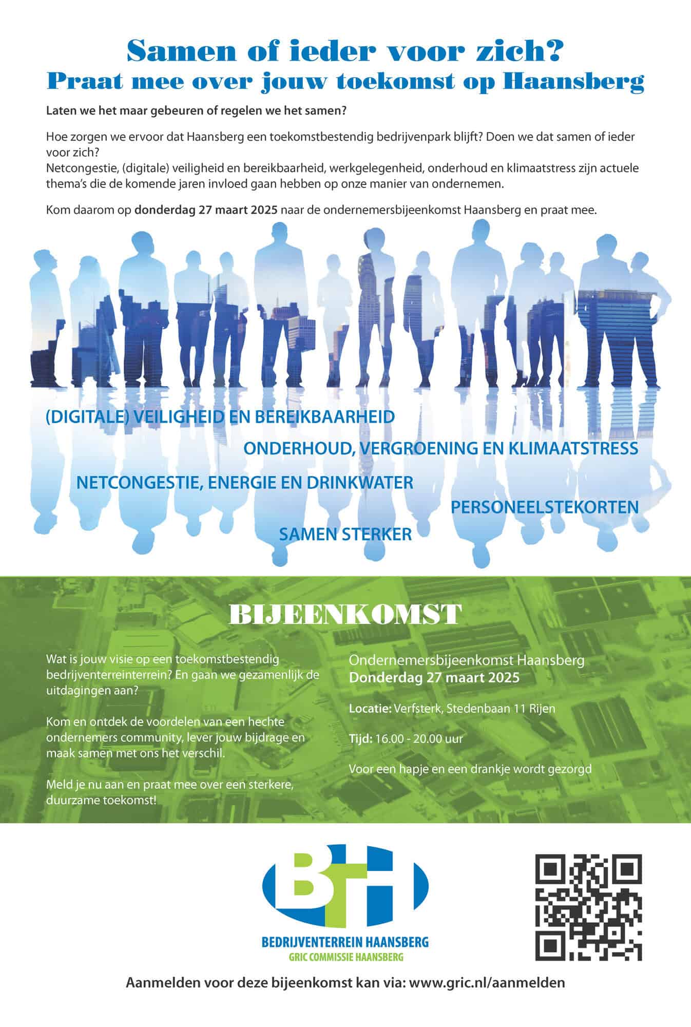 Hoe zorgen we ervoor dat Haansberg een toekomstbestendig bedrijvenpark blijft? Doen we dat samen of ieder voor zich?