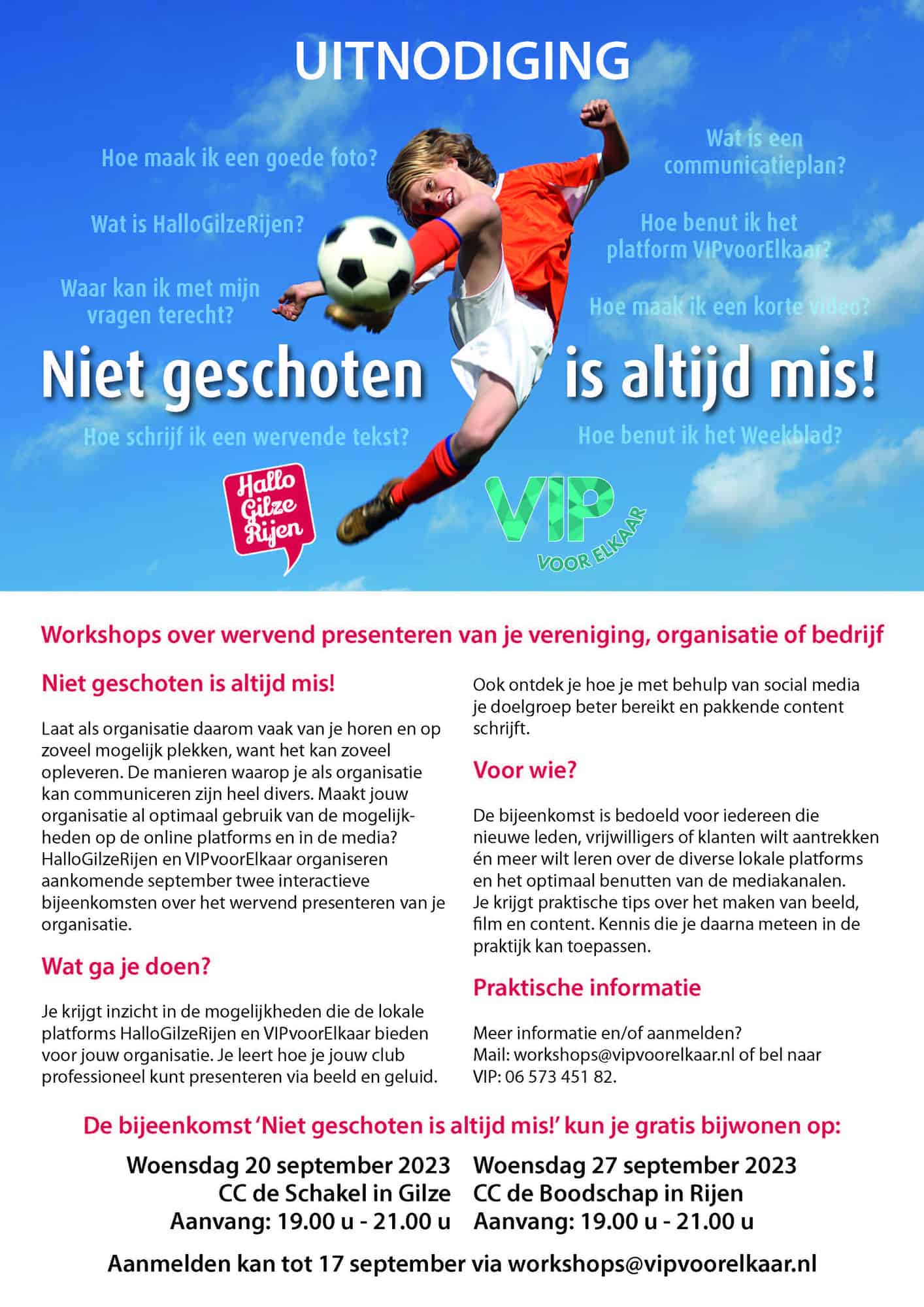 De bijeenkomst ‘Niet geschoten is altijd mis!’ kun je gratis bijwonen op: