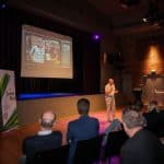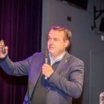 Hierna was het podium voor gastspreker Technofilosoof Rens van der Vorst. Rens combineert een gefundeerd inzicht in de principes achter technologie met vurige stand-up comedy, met maar één doel: ons na laten denken over onze relatie met technologie. Maakt technologie ons leven beter? Weten we wel wat beter is? En hoe krijgen we betere technologie? Rens schuurt, vermaakt én inspireert. 45 minuten lang vertelde hij boeiend over controle, algoritmes en de menselijke maat in een digitale wereld, onder de titelDon’t Mention the VAR”.