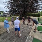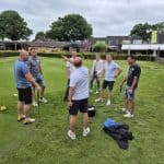 Business as unusual: donderdagmiddag stond voor ondernemers in het teken van chippen, putten én lekker eten. Onder het motto “zaken doen mag, birdies maken moet”, verzamelden zo’n 30 enthousiaste ondernemers zich op Golfpark Weilenseind voor een sportieve middag vol gezelligheid en een vleugje competitie. Er werd gestart met een sportieve splitsing: een deel van de groep ging de baan op voor een ronde van 9 holes – sommigen recht als een fairway, anderen iets meer off-course – terwijl het andere deel zich waagde aan een leerzame golfclinic. Deze clinic bestond uit drie onderdelen: pitch & putt (oftewel: de korte klap met grote impact), swing (voor wie z’n drive wilde perfectioneren) en chippen (lees: mikken met karakter). En alsof de weergoden even hun handicap moesten berekenen, viel er halverwege een bui. Maar dat mocht de pret niet drukken.