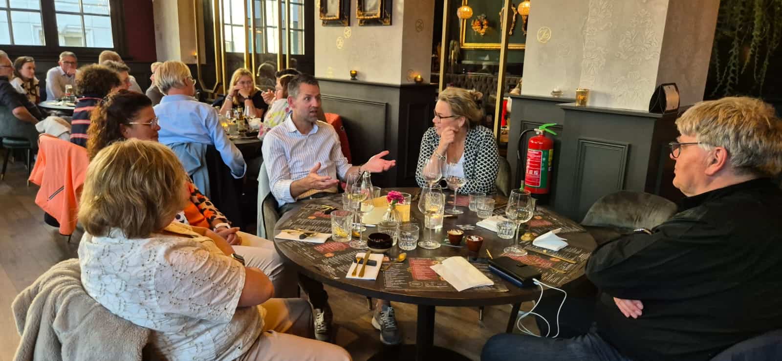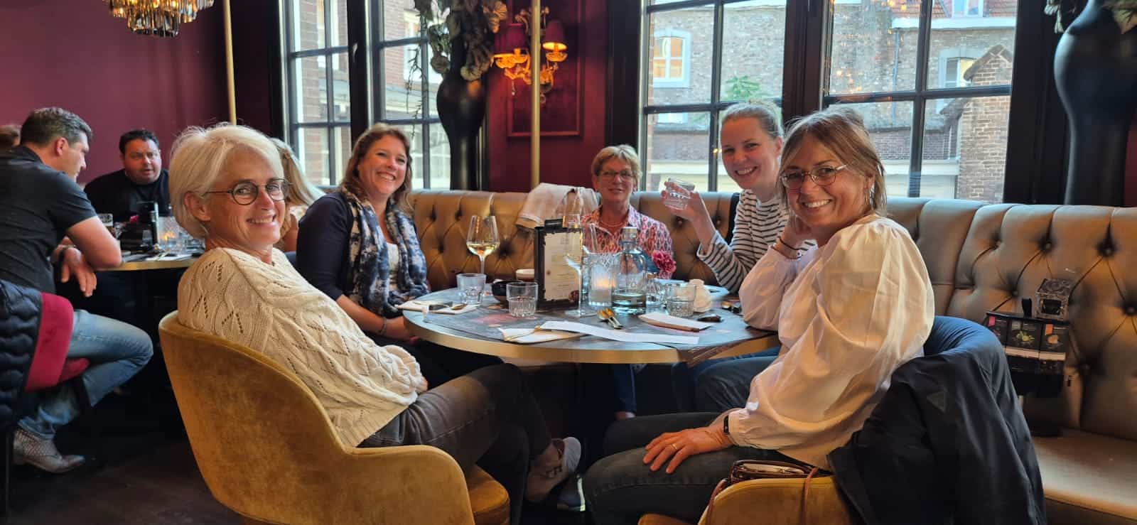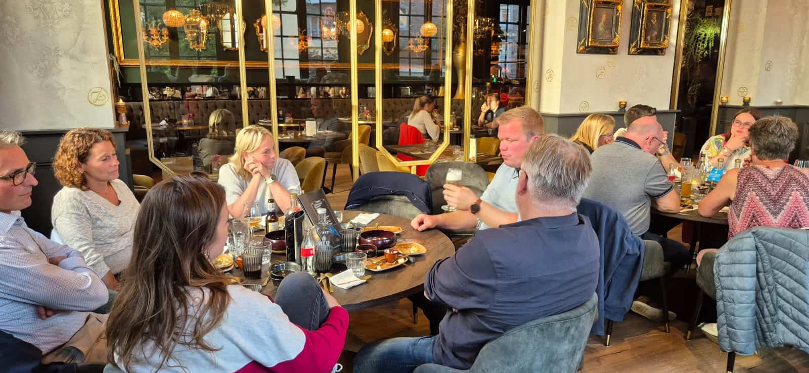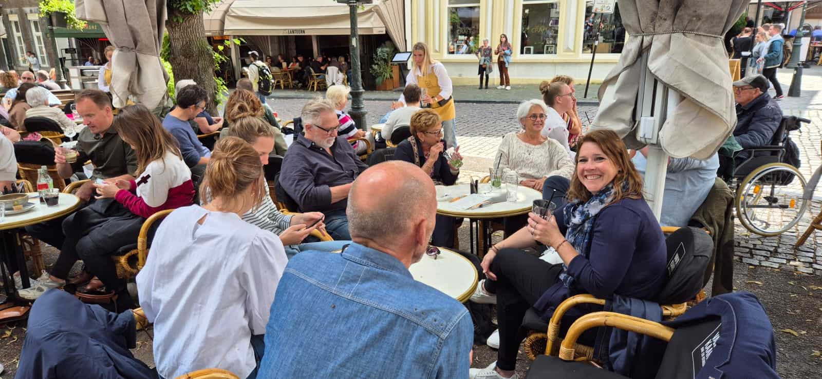 Bij aankomst in Maastricht was voor een aantal leden het eerste plein dat ze tegenkwamen meteen de eerste – en enige – stop van de vrij in te vullen middag, een ander deel verkende de stad. Om 18.00 uur verzamelde het gezelschap zich bij ’t Zusje, een restaurant in het centrum van Maastricht op 10 meter van het Vrijthof. Bekend om zijn uitgebreide menukaart en gezellige ambiance, bood ’t Zusje de perfecte optie voor heerlijk diner waarbij iedereen kon genieten van zijn of haar favoriete gerechtjes.