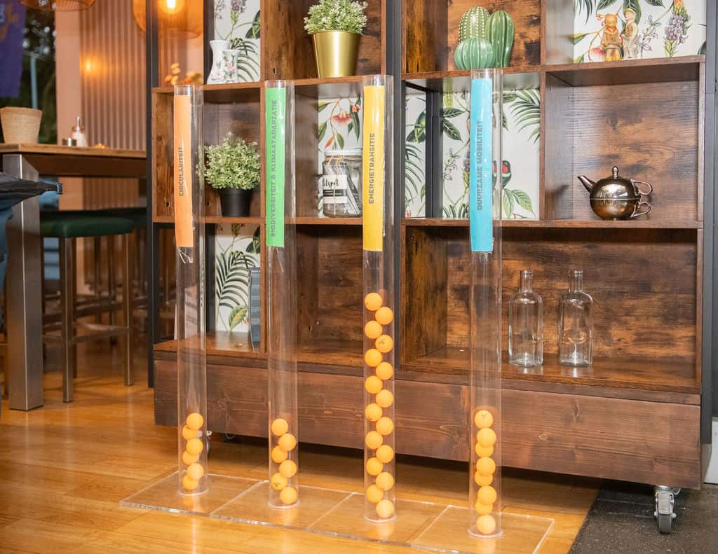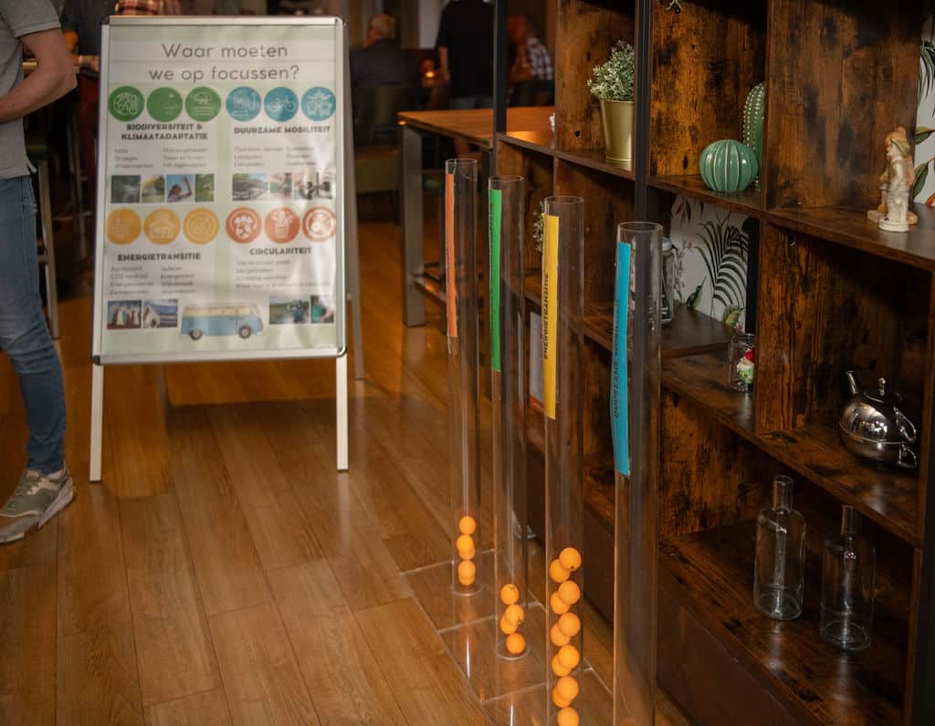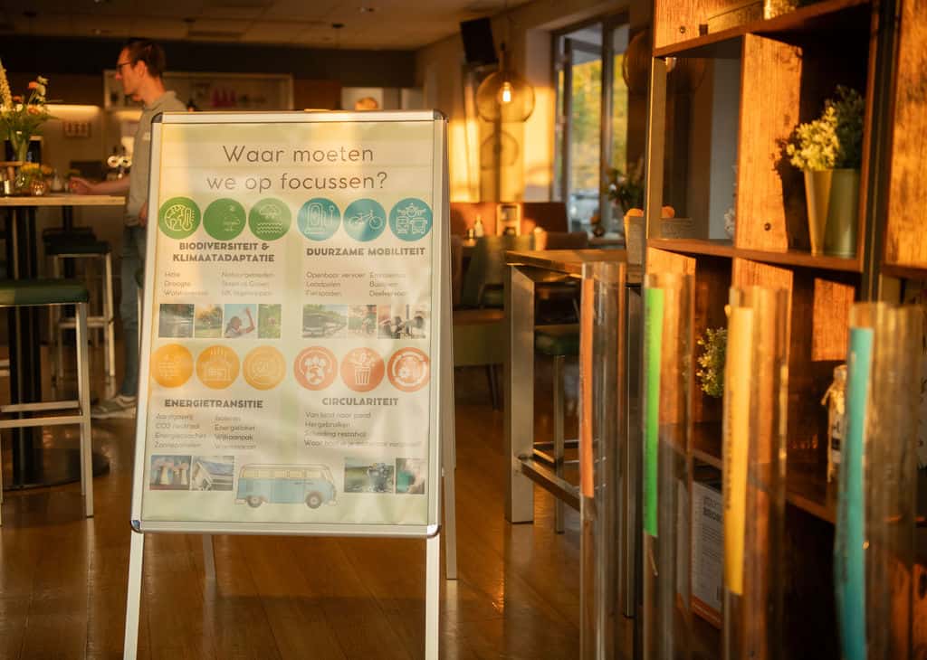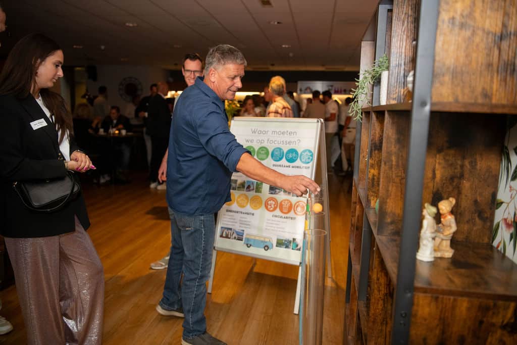 Bij ontvangst stonden medewerkers van de afdeling Duurzaamheid van de gemeente en werd iedereen gevraagd naar hun input voor de nieuwe duurzaamheidsvisie die de gemeente aan het ontwikkelen is. Na een kop koffie klonk de bel en verwelkomden GRIC-voorzitter Wil Hermens en wethouder Merijn Scheifes de aanwezige ondernemers in de theaterzaal.