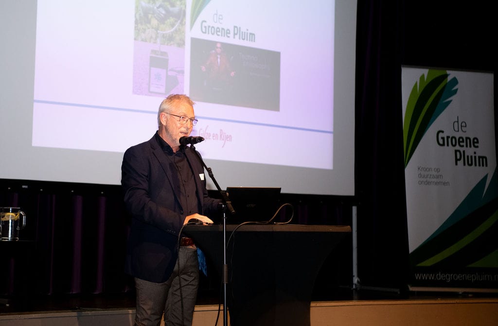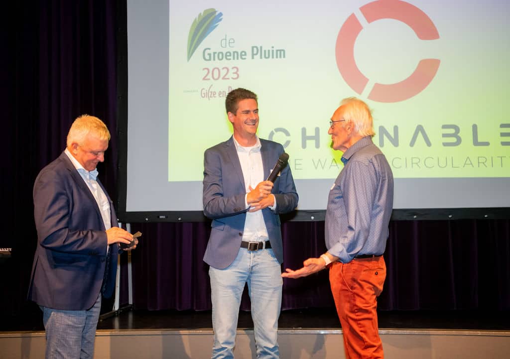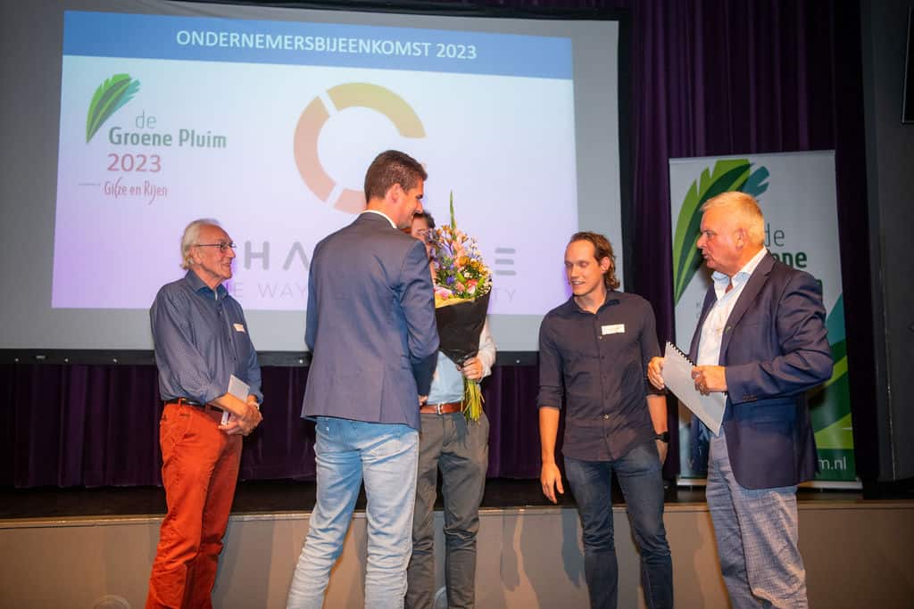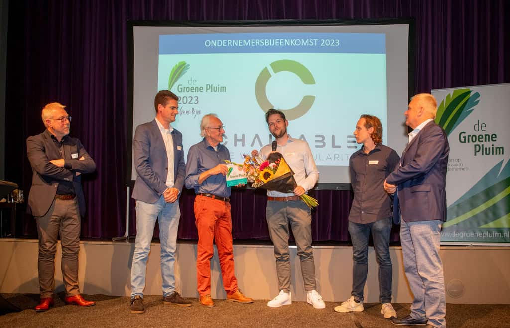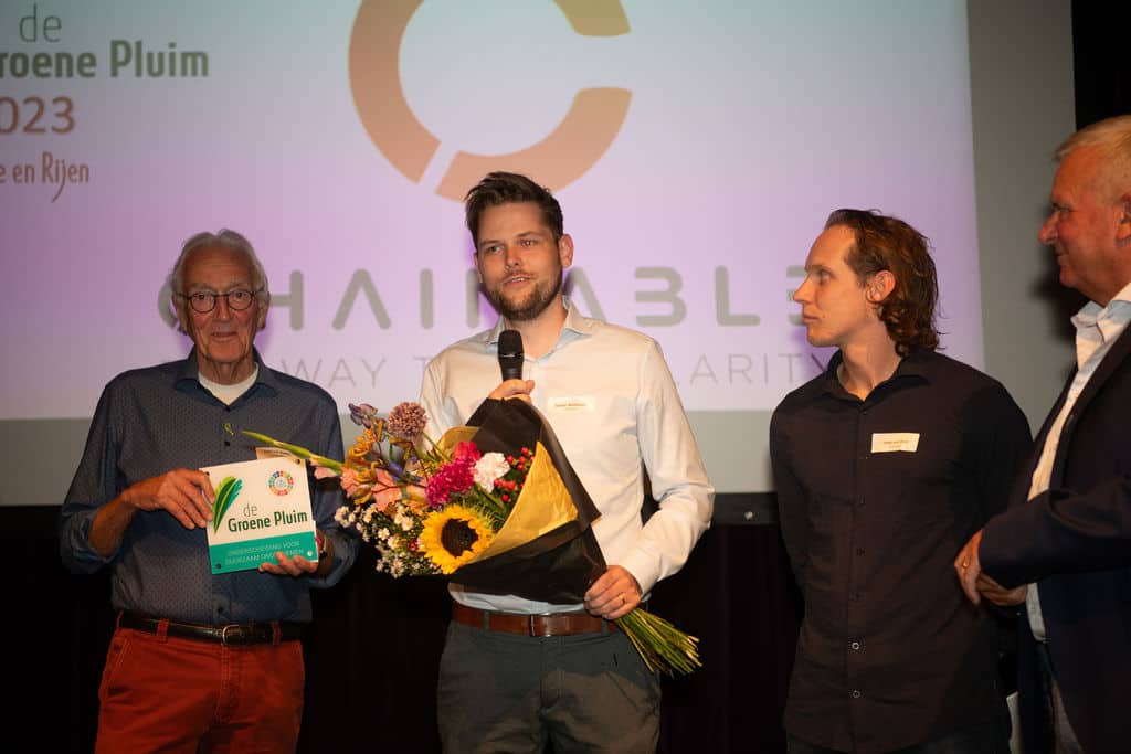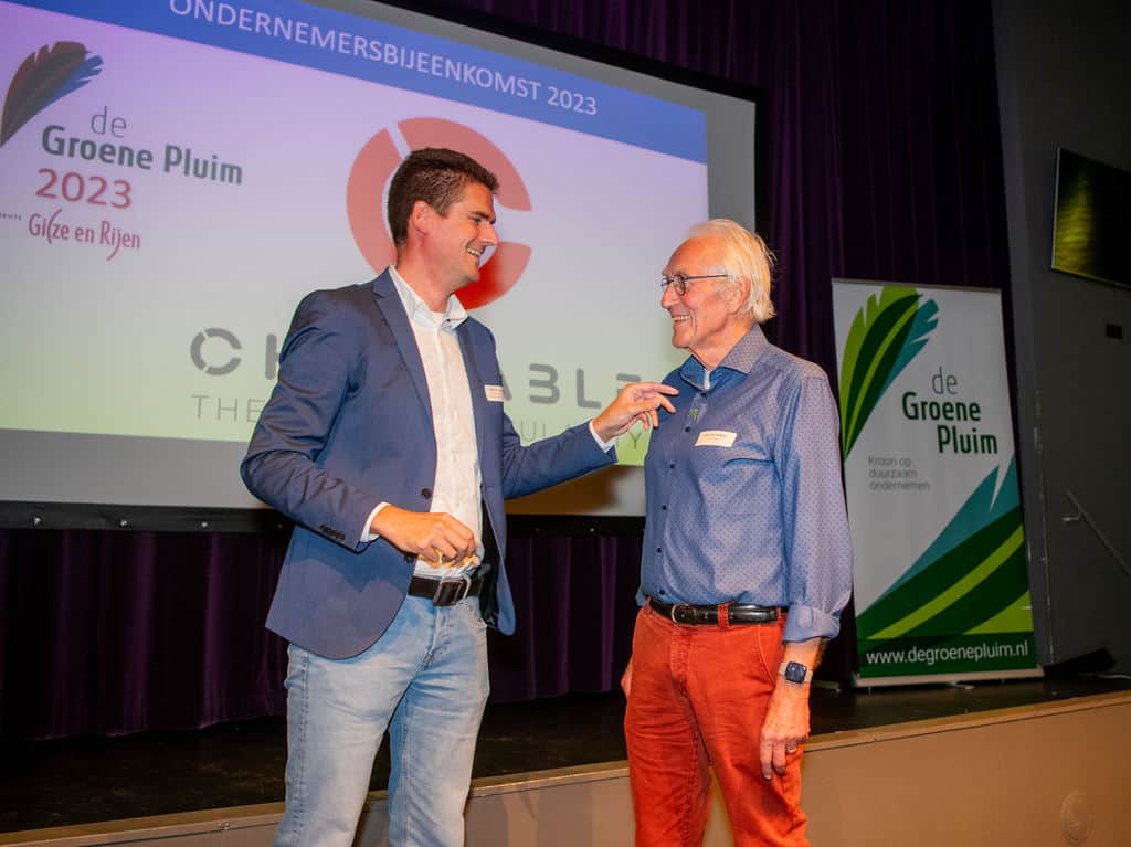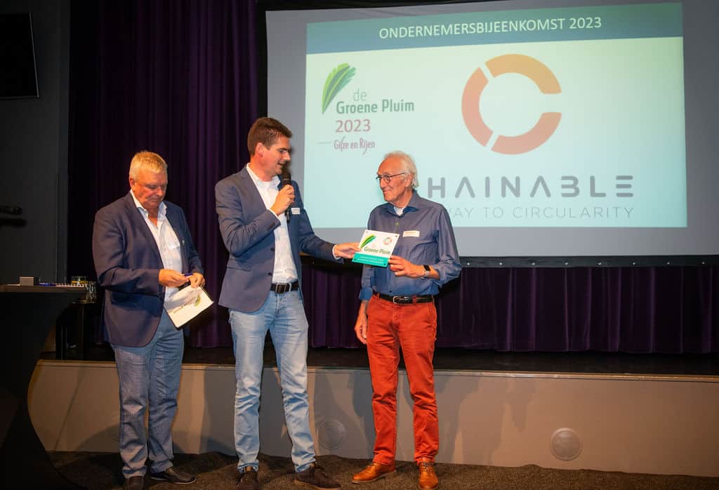 Het tweede programmaonderdeel. Voorzitter van Stichting De Groene Pluim, Peter van den Eijnden, nam het woord en vertelde dat het geloof dat belonen beter werkt dan straffen resulteerde in het ontstaan van De Groene Pluim, een stimuleringsprijs die op frequente basis wordt uitgereikt in gemeenten in heel Nederland. Gemeente Gilze en Rijen heeft zich aangesloten bij De Groene Pluim. In februari 2022 werd de eerste Groene Pluim Gilze en Rijen uitgereikt aan Curtec. Dit jaar is een onderneming die, volgens het juryrapport, gewaardeerd wordt voor het innovatieve circulaire bedrijfsconcept, de inzet op duurzaamheid en de maatschappelijk verantwoorde wijze van ondernemen de ontvanger van de 2e Groene Pluim in de gemeente Gilze en Rijen: Chainable!