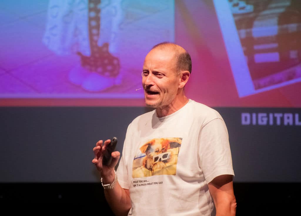 Zijn presentatie ging van links naar rechts. En weer terug. Robots, AI, deep learning, big data, op afstand bestuurbare kakkerlakken, smartphones, konijnen in de wolken, e-mailgedrag, sociale media en nog veel meer.