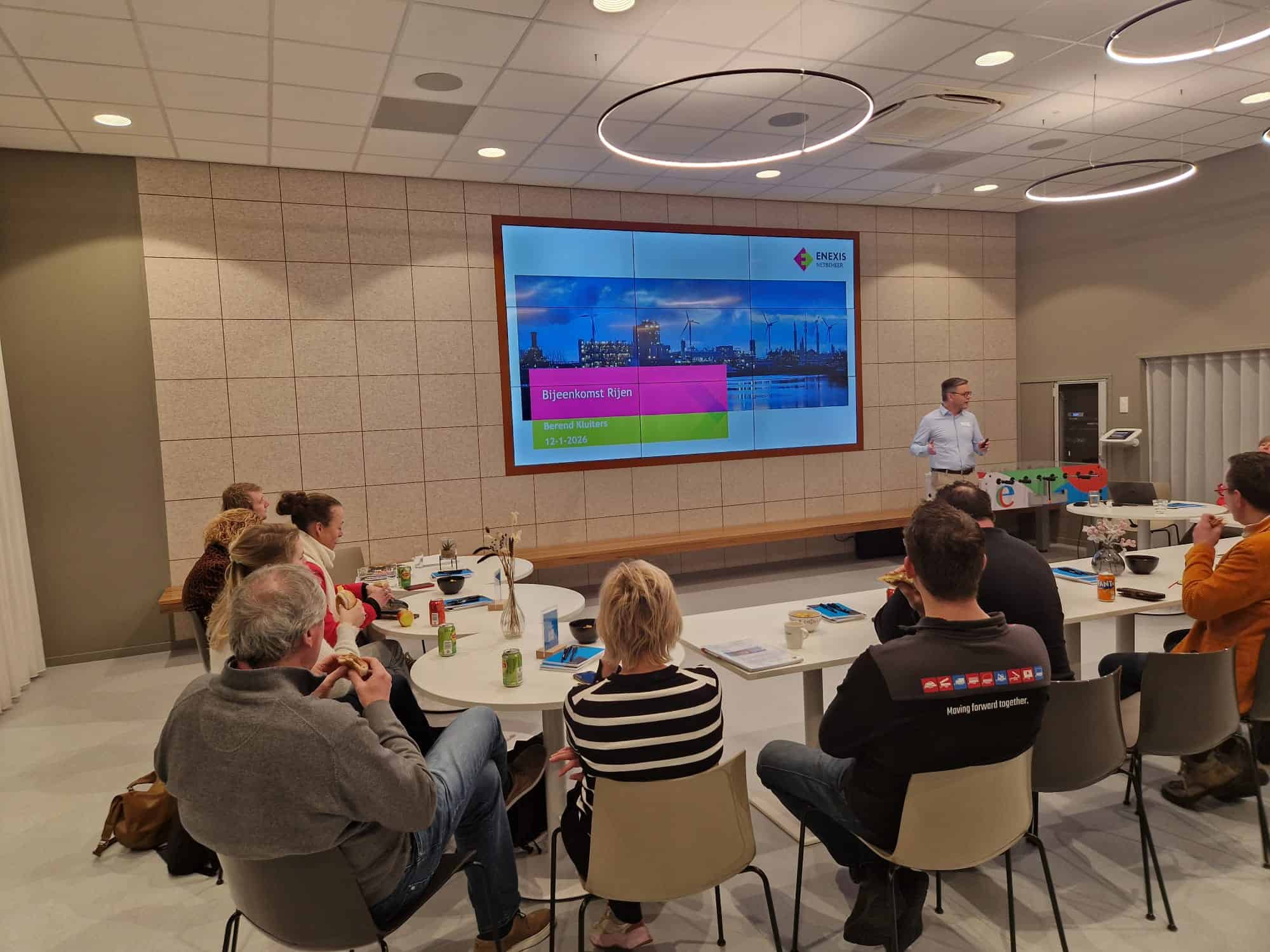 Vanuit Enexis verzorgde Berend, deskundige op het gebied van netwerkcongestie, een heldere en inhoudelijke presentatie over mogelijke vormen van samenwerking in de toekomst. Hij beantwoorde de vragen van de aanwezige ondernemers en gaf inzicht in de uitdagingen én kansen waar we gezamenlijk voor staan.